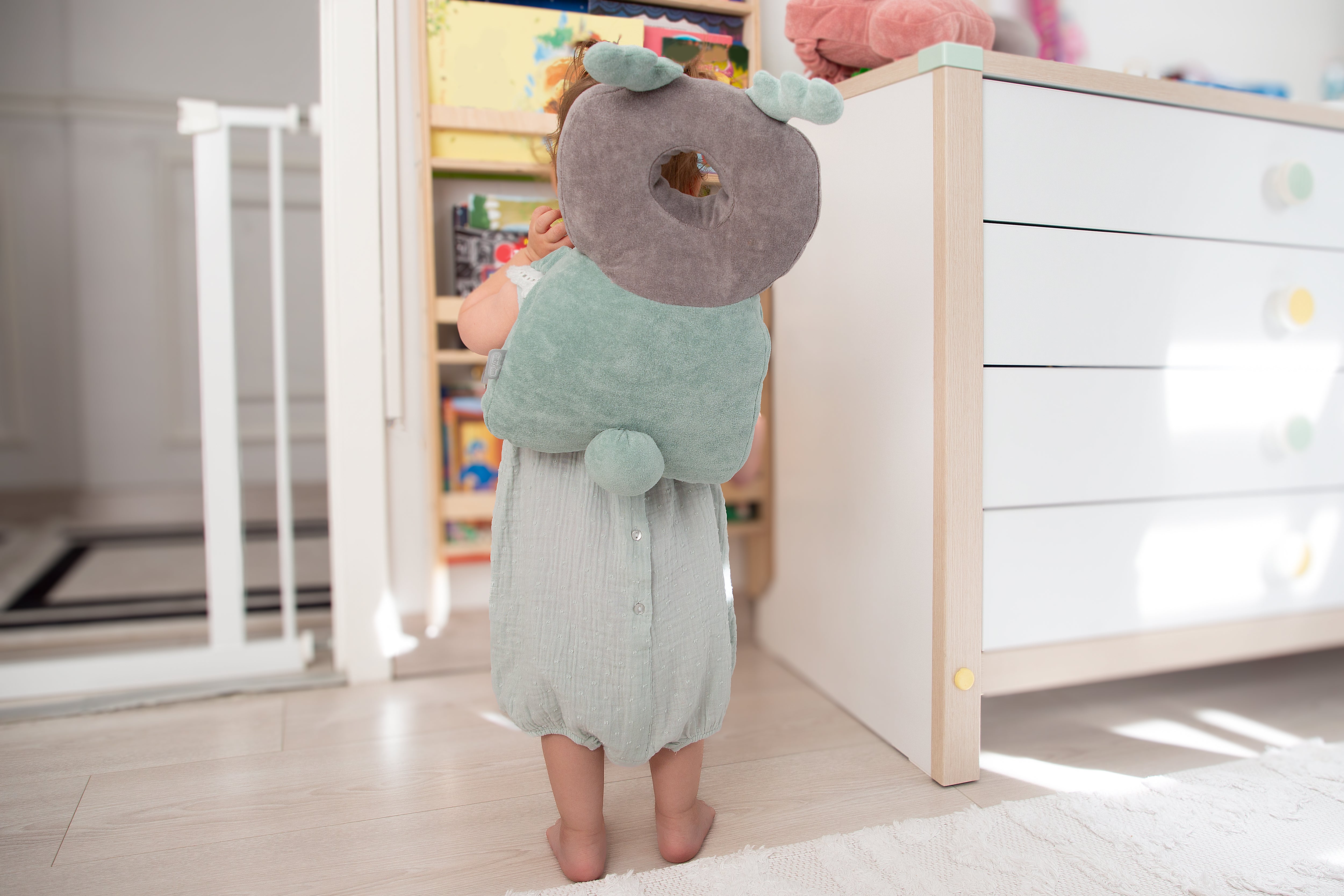 The Babyjem Angel Wing Protect Pillow offers expert support by cushioning your baby's head and back during early crawling and walking stages. Designed to effectively impacts and reduce the risk of injuries, this pillow ensures safety as your child gains independence. Its rubbery belt allows for quick attachment and removal, providing convenience without compromising protection. This protective design supports your baby's development while minimizing the risk of bumps and falls.